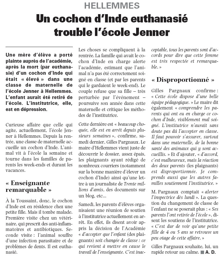 Et c'est disproportionné que de réagir à la mort d'un être vivant ?
